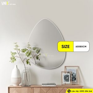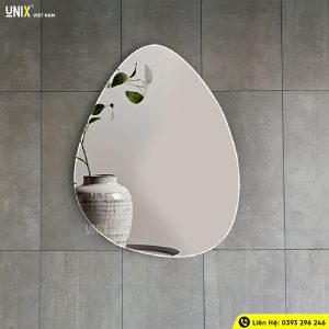 Sản phẩm được thiết kế dưới dạng hình giọt nước hài hòa, trong trẻo. Đường bo viền tròn thoải không sắc cạnh rất an toàn khi sử dụng. Thiết kế lạ mặt hình giọt nước như thổi một làn gió mới vào không gian phòng tắm. Nếu bạn đã quá nhàm chán với những chiếc gương hình tròn, oval hay hình chữ nhật quen thuộc thì hãy thử sở hữu một mẫu thiết kế mới lạ cho căn phòng thêm sinh động.