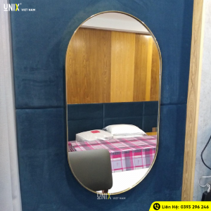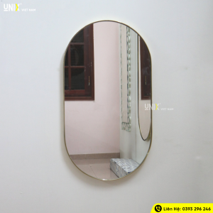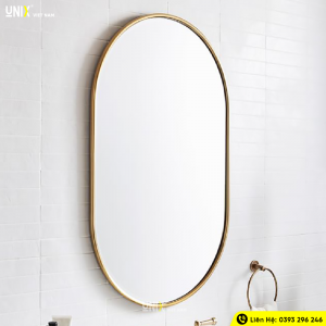 3. Đơn vị tư vấn, thiết kế gương Oval viền inox mạ vàng A04.K2 – Unix House