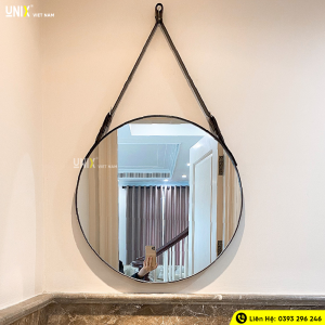 Gương tròn dây da có viền dây da bám sát dọc theo đường viền gương. Thiết kế này không chỉ giúp hạn chế tác động ngoại lực khi gương bị va đập mà còn tạo nên vẻ ngoài tinh tế cho sản phẩm. Phần dây da có các nấc điều chỉnh giống như cấu tạo của dây thắt lưng. Chính vì vậy mà bạn có thể dễ dàng tùy chỉnh chiều dài dây treo theo ý muốn của bản thân.